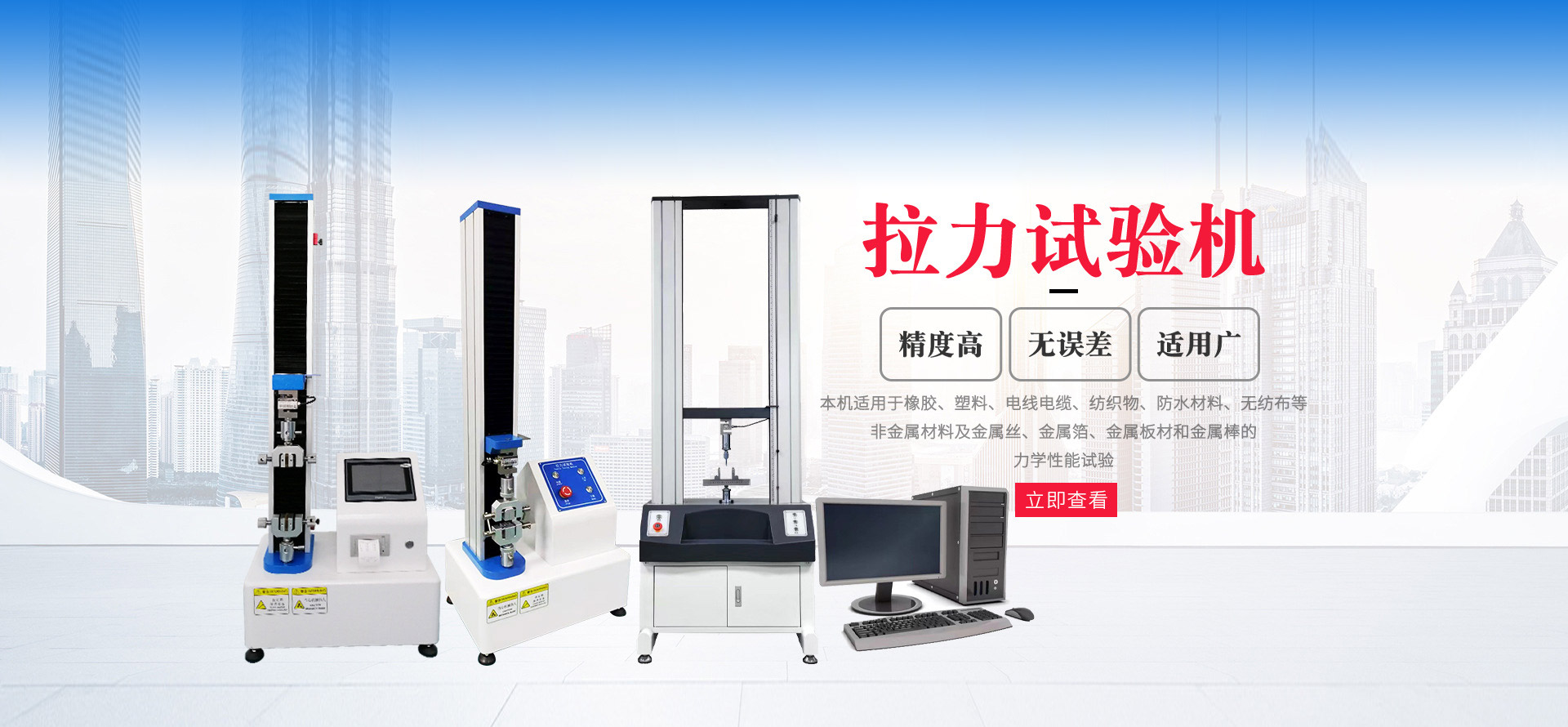 ? ? ? ?電子萬能拉力試驗(yàn)機(jī)可對橡膠、塑料、塑料、薄膜、紡織、纖維、納米材料、高分子材料、復(fù)合材料、包裝帶、紙張、電線電纜、光纖光纜、安全帶、保險帶、皮革皮帶、鞋類、膠帶、聚合物、彈簧鋼、不銹鋼、鑄件、鋼板、鋼帶、有色金屬、汽車零部件、合金材料及其它非金屬材料和金屬材料進(jìn)行拉伸、壓縮、彎曲...